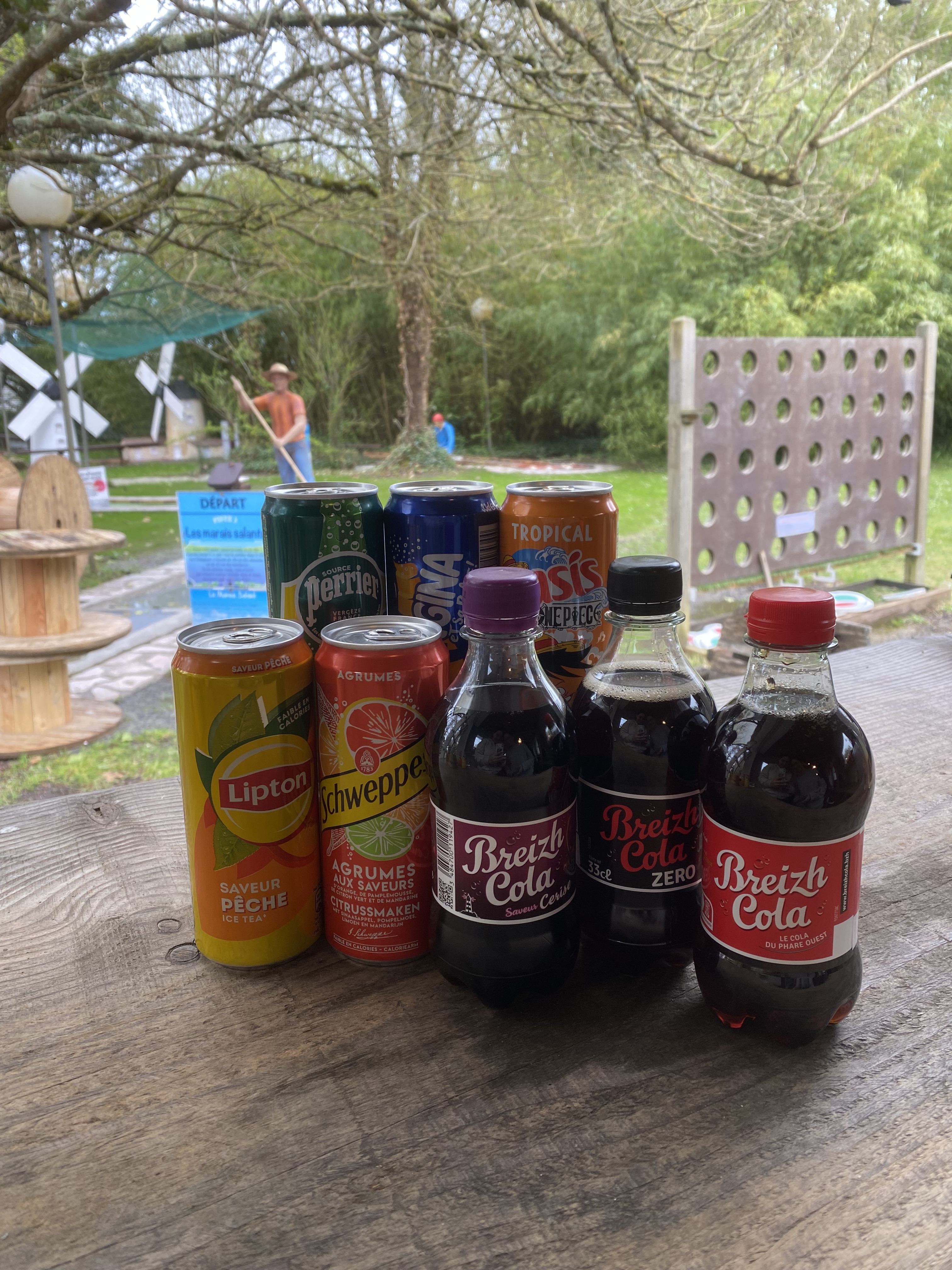 Breizh cola, Breizh cola zéro, Breizh cola Cherry, Orangina, Perrier, Schweppes agrumes, Cacolac, Ice-tea pêche, Oasis tropical, San Pellegrino : 2.00€